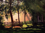 2012's Ochtends vroeg in het Markdal bij Breda, tegenlicht en mist zorgen voor een idyllische sfeer, het oude hek deed de rest